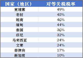 美國對貿易伙伴拋出“對等關稅”政策,再次把全球拉回“脫鉤與遏制”的敘事之中,東南亞也成為重災區(如對柬埔寨、越南分別征收49%、46%的關稅)。而東南亞國家這些中國周邊經濟體的回應,大多同意與美國開啟關稅談判,或是承諾不進行報復。
