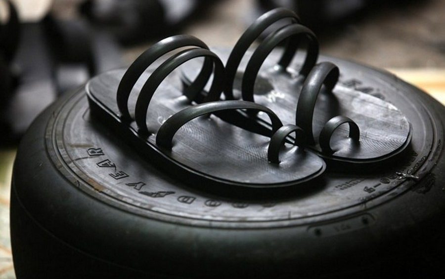 彼時(shí),越南人從被伏擊的軍用卡車中取下輪胎,制作出第一雙橡膠涼鞋。用輪胎制成的橡膠涼鞋成本低廉、堅(jiān)固耐用,士兵穿著它穿越叢林、跋山涉水,保衛(wèi)祖國(guó)。這種誕生于越戰(zhàn)期間簡(jiǎn)單而耐用的鞋款,跟隨橡膠產(chǎn)業(yè)的發(fā)展一直延續(xù)傳承至如今。