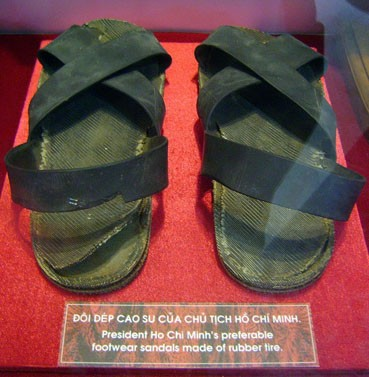 越南革命領(lǐng)袖胡志明,便是橡膠涼鞋的擁躉,胡志明生前穿過(guò)的橡膠涼鞋現(xiàn)今還在河內(nèi)博物館內(nèi)展出。涼鞋是胡志明樸實(shí)生活的象征,正如越南民族歌曲歌詞中所寫:“這些涼鞋幫助(胡志明)叔叔走過(guò)漫漫長(zhǎng)路,穿著涼鞋,他克服萬(wàn)難建設(shè)國(guó)家。”