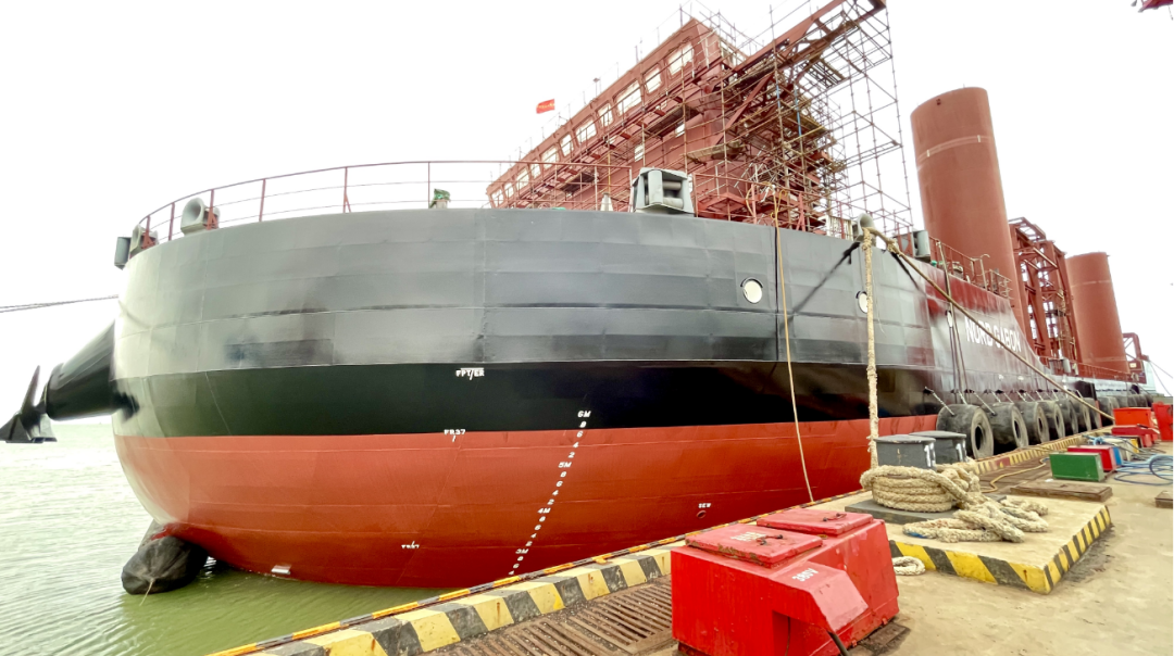 該船作為中船廣西公司目前建造的首艘100米級工程船和廣西目前建造噸位最大的船舶,有著諸多生產技術難題。中船廣西公司生產項目團隊狠抓生產技術準備工作、建立監控預警機制、完善風險控制措施,搶抓時間打通堵點,在各方的支持配合下,歷經9個月,船舶如期完成階段性建造工作。