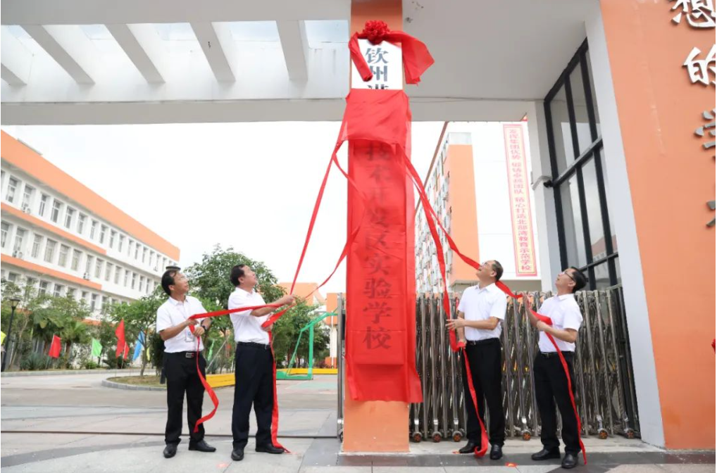 6月5日,中國(廣西)自由貿易試驗區欽州港片區(以下簡稱欽州港片區)管委舉行欽州港經濟技術開發區實驗學校(以下簡稱實驗學校)揭牌儀式。欽州市委常委、市人民政府黨組副書記,欽州港片區管委副主任鐘恒欽,欽州港片區管委副主任莫福文,協調指導局局長葉俊,欽州港經濟技術開發區第一小學教育集團校長陳瑞德共同為學校揭牌。
