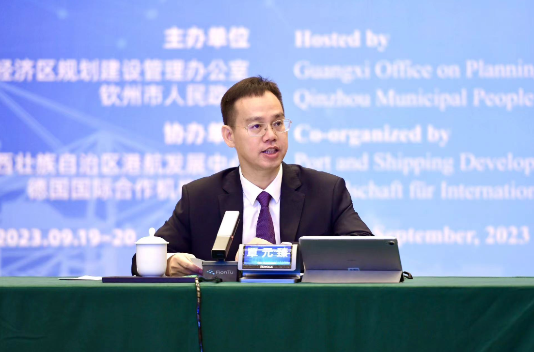 2023年9月19日,由廣西壯族自治區北部灣經濟區規劃建設管理辦公室、欽州市人民政府主辦的以“加快港產城融合發展 共享中國—東盟港口城市合作新機遇”為主題的2023中國—東盟港口城市合作網絡研討會暨國際交流培訓在欽州舉行。自治區北部灣辦副主任覃元臻在會上發表致辭,欽州市長王雄昌作總結發言。中國(廣西)自由貿易試驗區研究院院長、廣西大學邊疆經濟研究院、經濟學院院長李光輝主持研討會。